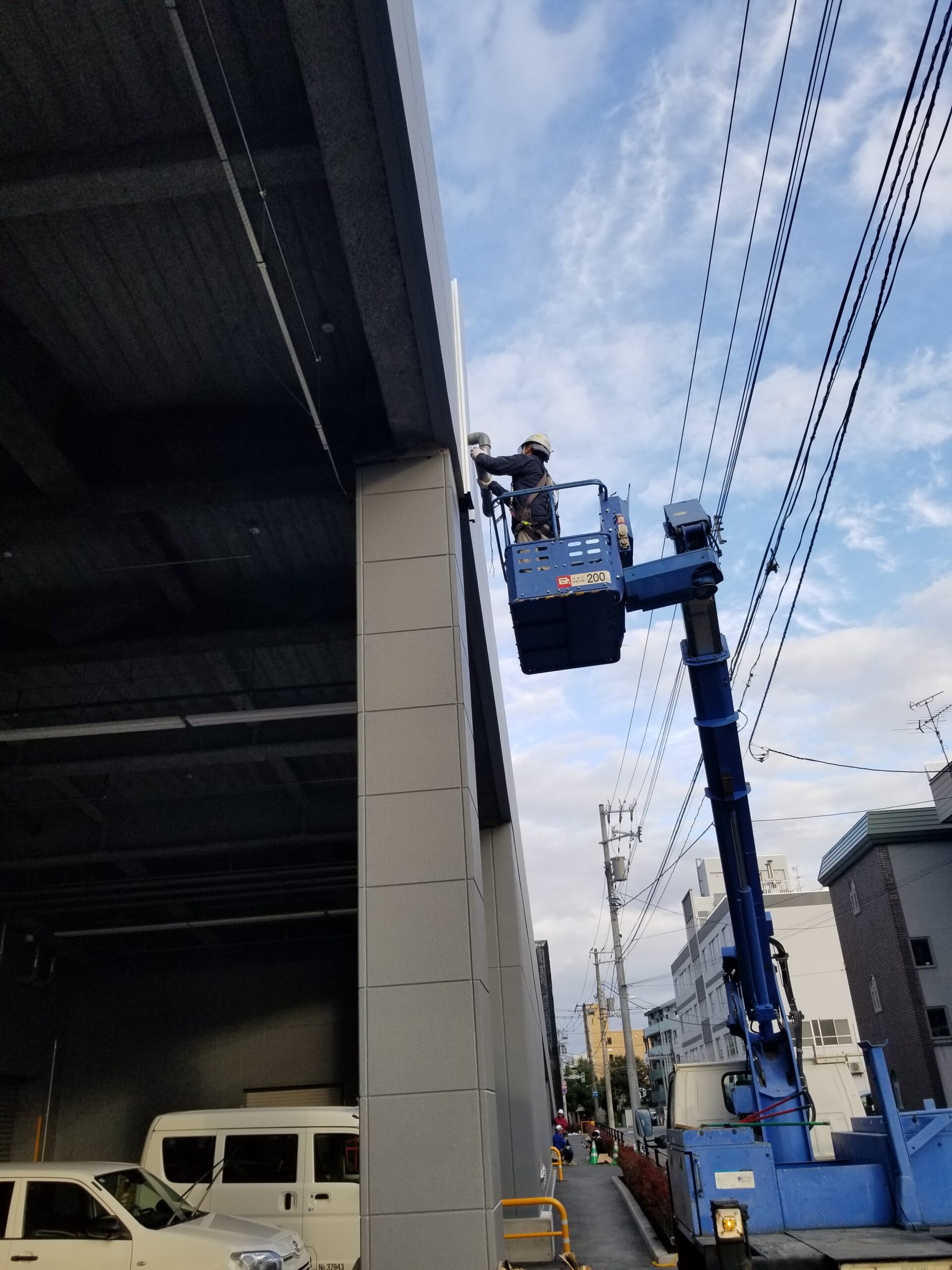 今回はトラック高所作業車を使用しての雨樋の取り付け作業の様子でした。